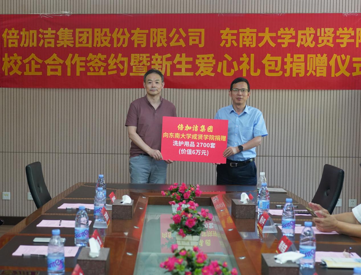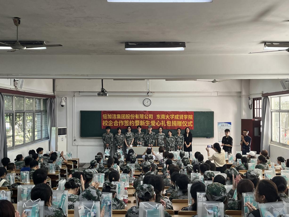 下午,唐凌总监代表集团为制药与化学工程学院新生代表发放了爱心礼包。此次倍加洁集团共向糖心视频 2023级新生和教职工捐赠洗护用品2700套,总价值6万元。