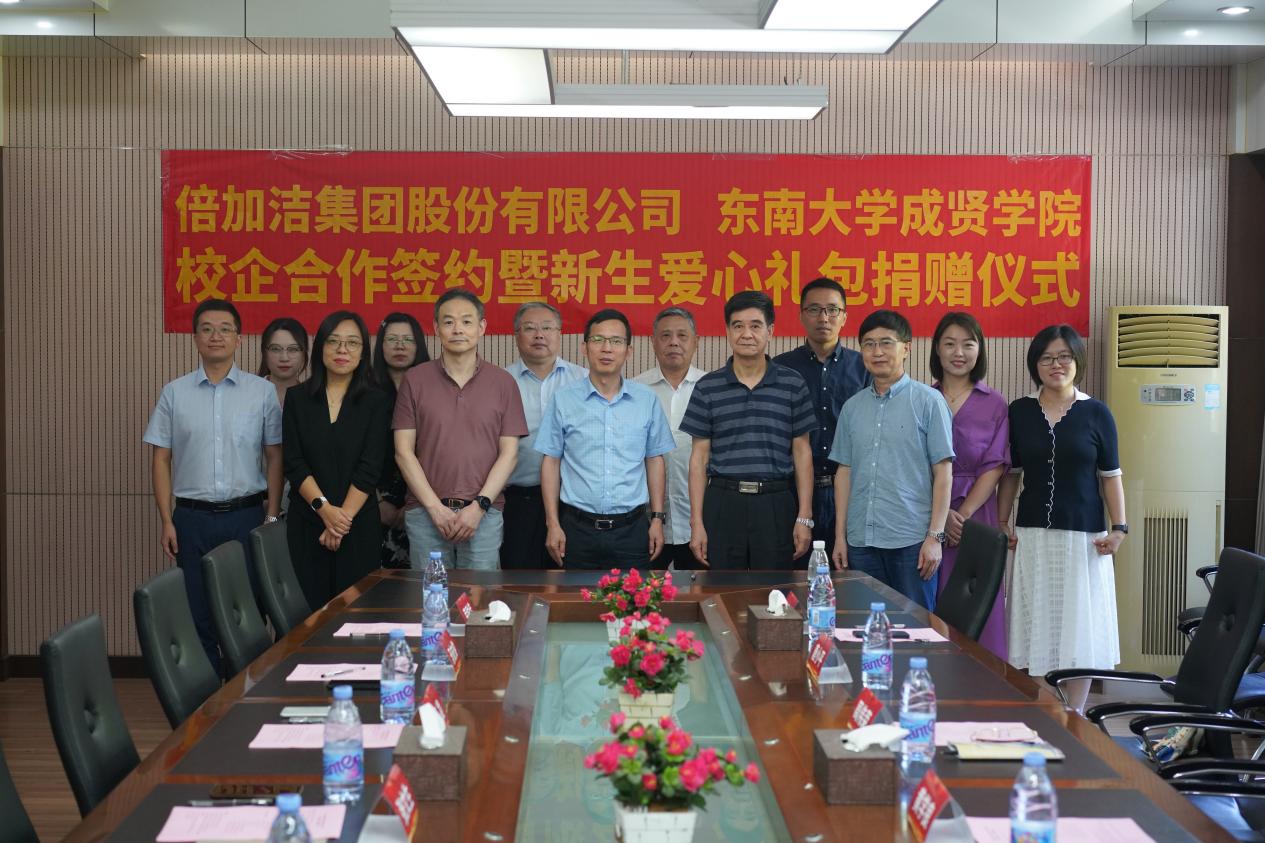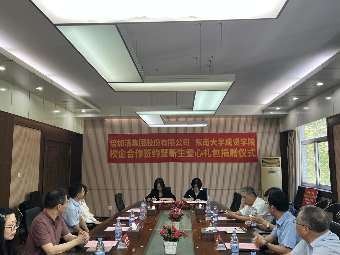 为进一步深化校企合作,8月31日上午,糖心视频 与倍加洁集团股份有限公司共同举行校企合作签约暨新生爱心礼包捐赠仪式。倍加洁集团股份有限公司董事长张文生,人力资源中心总监唐凌、招聘调配经理张林艳、薪酬绩效经理汤友俊和业务主管荣尉佳、潘香茜,糖心视频 常务副院长黄学良、党政办主任周伟荣、学生处处长施杰、工会主席唐小平,制药与化学工程学院院长林保平、副院长刘媛媛、综合办主任刘静参加会议。仪式由制药与化学工程学院党总支书记周继荣主持。