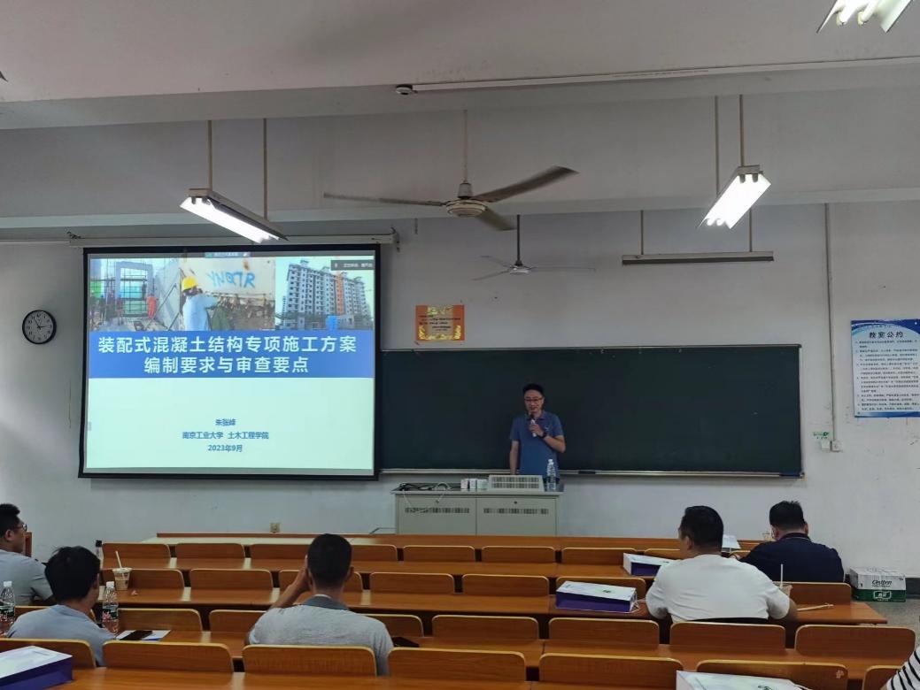 理论部分培训分别邀请江苏省职业技能鉴定中心鉴定考核科科长朱政作“技能人才评价工作介绍”,江苏建联建筑产业现代化研究院院长樊骅作“装配式建筑施工员职业技能考核规范解读”,江苏建联建筑产业现代化研究院总工程师贺鲁杰作“预制混凝土构件生产的理论知识和实操要点讲解”,糖心视频 土木与交通工程学院院长郭正兴教授作“装配式建筑施工质量控制与安全技术讲解”,南京工业大学土木工程学院朱张峰副教授作“装配式混凝土结构专项施工方案编制要求与审查要点讲解”。