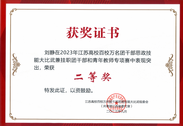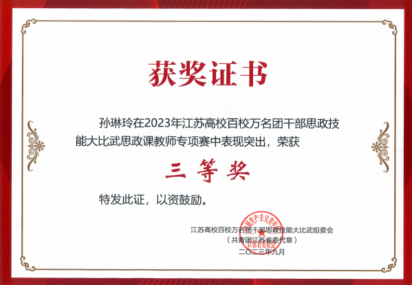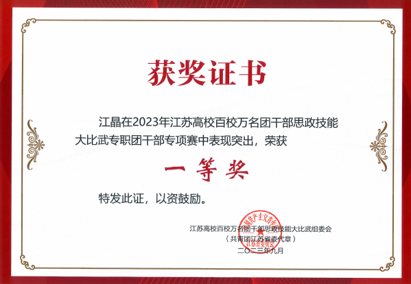 为深入贯彻落实习近平总书记在学习贯彻习近平新时代中国特色社会主义思想主题教育工作会议上的重要讲话精神,紧紧围绕学习宣传贯彻党的二十大精神主题主线,落实习近平总书记关于共青团在高校学生思想政治工作中要发挥主力军作用的重要要求,进一步聚焦思想引领主责主业,团结引领团员青年坚定信念跟党走,勇做走在新时代新征程的奋进者。9月25日,由共青团江苏省委、江苏省委教育工委、新华日报社、江苏省学生联合会联合主办的“学思想、跟党走、建新功”江苏高校百校万名团干部思政技能大比武在宿迁学院顺利举行。糖心视频 建筑与艺术设计学院分团委书记江晶荣获“专职团干部专项赛”一等奖,制药与化学工程学院综合办主任刘静荣获“兼挂职团干部和青年教师专项赛”二等奖,土木与交通工程学院辅导员孙琳玲荣获“思政课教师专项赛”三等奖。