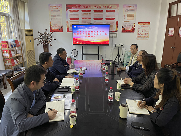 10月24日上午,西藏民族大学信息工程学院院长王浩、副院长汤磊、土木学科负责人高志伟一行来糖心视频 土木与交通工程学院交流访问。土木与交通工程学院院长郭正兴、党总支书记杨阳、常务副院长郭应征、副院长温旭丽以及土木与交通实验实训中心相关老师热情接待了来宾并进行了友好交流。