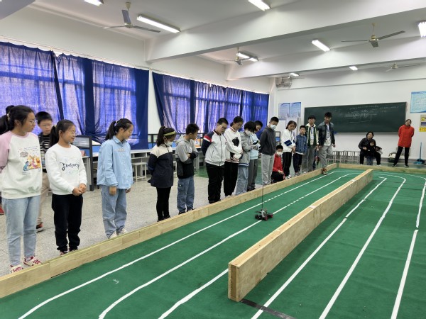 刚进入电工电子实验中心实验室,大家就被展架上的智能车模型吸引,正在备战江苏省机器人大赛的大学生们将智能车放在赛道上跑起来,引导大家观察、思考智能车的工作原理;随后大家来到运动场空地,在老师大家讲解、演示水火箭的发射后,大家动手加水、打气,进行发射比赛。