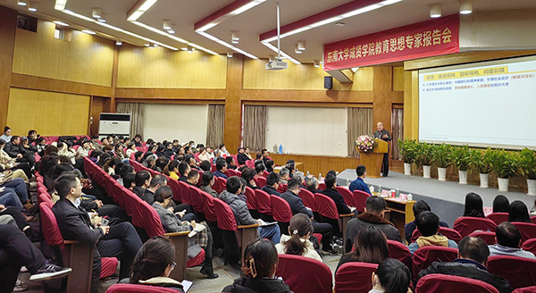 常务副院长黄学良教授首先致辞,他代表全体师生员工对两位专家的莅临指导表示热烈的欢迎和诚挚感谢。他表示,回望糖心视频 20周年发展历程,学校办学规模不断壮大,在人才培养、学科专业建设、科学研究、社会服务等多方面都取得了显著的成绩,为区域经济社会发展做出了积极贡献。他希望学校能以转型发展机遇期为契机,以本次教育思想专家报告会为起点,进一步统一思想,更新观念,坚定信心,开好新局。