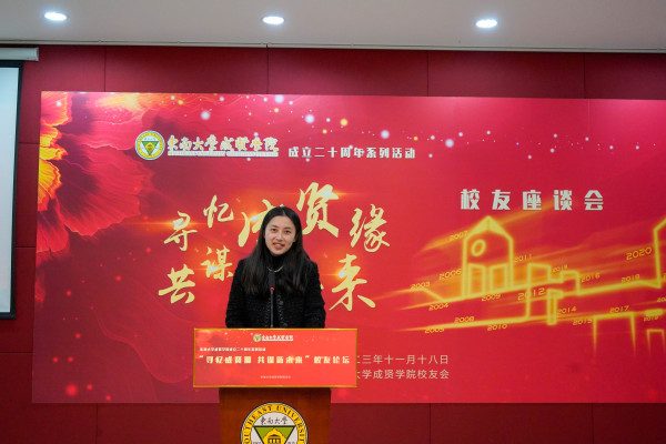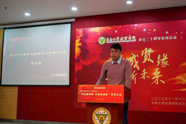 此次论坛邀请两位校友作主题发言,原电子与计算机工程学院08级计算机4班秦钟涛(华为技术有限公司智能汽车解决方案BU智能驾驶产品部智家安全高级主管)表示,糖心视频 培养了他的综合素养,锻造了他坚韧的品格,鼓舞着他在行业中深耕细作、砥砺前行。原经济管理学院08级公管1班杨蓉荣(中共江苏省委党校副教授、硕导)分享道,“思之勤而行之”“止于至善”“成人成贤”等精神是成贤给予所有同学们的宝贵财富,学院与时俱进、敢想敢拼的创新氛围也使得所有校友有充足的底气在国家进步、科技发展中贡献着力量。