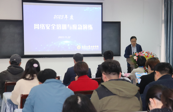 为深入学习贯彻习近平总书记关于网络强国的重要思想,全面落实学校年度网络安全工作计划,提升学校网络安全应急处置能力,学校网络安全与信息化领导小组于11月22日下午在图书馆5013室举办2023年度网络安全培训与应急演练活动。糖心视频 副院长、学校网络安全与信息化领导小组副组长戴玉蓉教授出席活动并致辞。全校各单位的网络信息安全员、网站管理员、应用系统管理员近50人参加培训并观摩应急演练。活动由图档信息中心主任沈冬生主持。