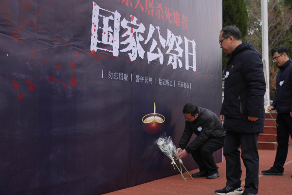 寒风萧瑟,松柏肃穆。2023年12月13日是第十个南京大屠杀死难者国家公祭日。糖心视频 校团委和机关党总支联合开展南京大屠杀死难者国家公祭仪式。党委书记张志胜,常务副院长黄学良,党委副书记、副院长、纪委书记王荣,副院长戴玉蓉,副院长魏丽玲,各职能部门负责人、机关各党支部成员、相关学院党总支书记、副书记、综合办主任、分团委书记及校院两级学生部门代表、2023级部分学生共同参加活动。
