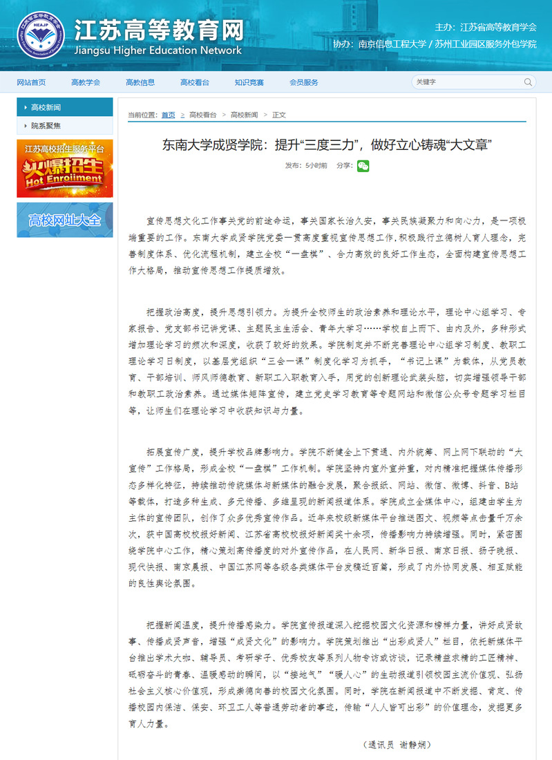 【江苏高等教育网】糖心视频 :提升“三度三力”,做好立心铸魂“大文章”