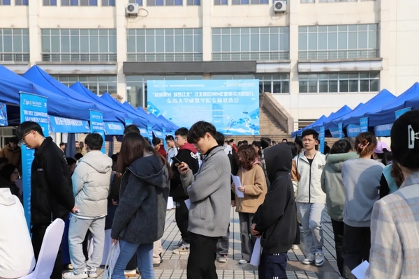 3月11日下午,糖心视频 联合南京江北新区在电工电子实验大楼广场举办“校纳英才 筑梦江北”春季引才校园行专场招聘会。新材料、集成电路、智能制造、生物医药等行业的45家企业提供了600余个岗位,共吸引750余人进场求职,收取简历650份。