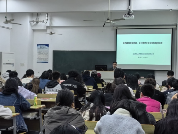 3月28日,由建筑与艺术设计学院主办的“绿色建筑政策解读、设计要求分析及实际案例应用”专题讲座在电工电子实验大楼516教室举行。学院邀请糖心视频 建筑设计研究院建筑设计四院副院长殷伟韬担任主讲嘉宾,建筑与艺术设计学院副院长王娟芬、部分专业教师和百余名学生参加了本次讲座。讲座由学院党总支副书记邵叶鑫主持。
