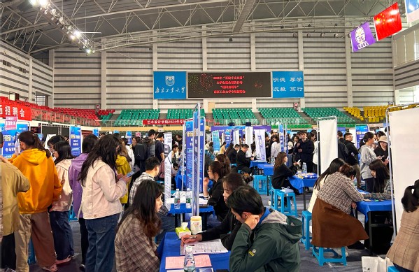 为深入实施就业优先战略,切实帮助高校毕业生群体高质量充分就业,团省委联合省教育厅、省工业和信息化厅、省人力资源和社会保障厅、省政府国有资产监督管理委员会、省广播电视总台共同开展“百校千企万岗”2024年江苏省大学生就业帮扶行动。为全方位服务大学生就业,4月17日下午,校团委组织毕业班学生集体前往南京工业大学参加“送岗直通车”线下专场招聘会,校团委老师杨龙清带领糖心视频 100多名2024届毕业生参加了本次招聘。