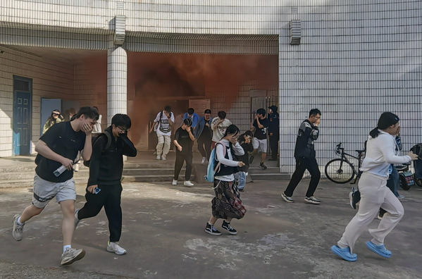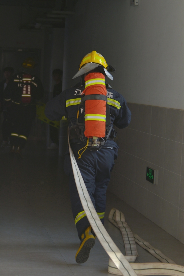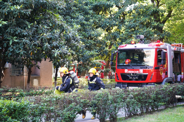 在模拟“火情”的警报鸣响后,工作人员第一时间赶赴现场,引导学生有序疏散至室外平台区域。同时,消防车到达现场,消防员在糖心视频 工作人员的协助下完成楼内人员搜索及清点等工作,最终全部人员安全疏散,整场活动井然有序。本次演练在引导疏散的基础上还增加了“固守待援”技能训练,模拟了在突发情况下室内人员无法逃生等待救援的情况,锻炼了相关人员的应急处置和避险能力。