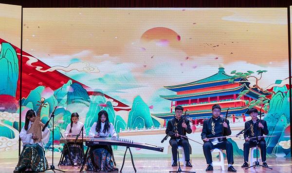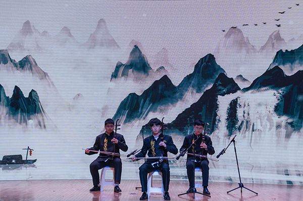 古筝合奏《浏阳河》拉开音乐会序幕,琴弦细腻如春蚕吐丝,悠扬的旋律跃入人心。演奏者巧妙地运用不同的技法,形成鲜明的对比,使乐曲具有更强烈的感染力,深情地表达了对家乡和对生活的热爱。二胡演奏《水龙吟》气势磅礴、恢宏大气,演奏者以娴熟的技艺和饱满的热情展现了中华民族不屈不挠、勇往直前的精神面貌。《钢水奔流》旋律富有朝气、节奏铿锵有力,歌颂了钢铁工人的豪迈气概和冲天干劲。民乐合奏《万疆》用悠扬的旋律勾勒出山河无恙的盛世景象,表达了对祖国蒸蒸日上的赞美与自豪。《人生的旋转木马》节奏轻盈、旋律优美、气氛明快,表达出生命的欢乐与活力。作为结束曲目的《友谊地久天长》用悠扬婉转的旋律展示了友谊的真挚与美好,让在场的观众深受感动。纵使岁月如梭,但友情永存,带着挚友的期待与祝福,不断探索,敢于冒险,勇往直前。