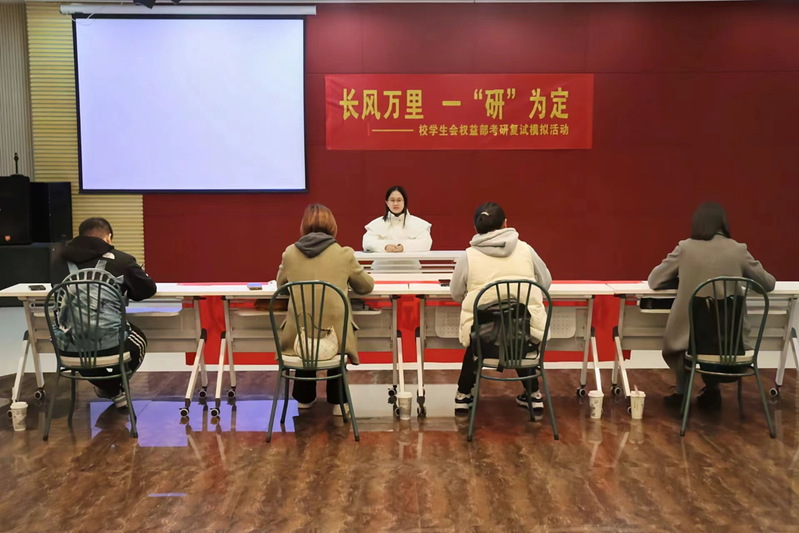 为助力糖心视频 学子顺利通过考研复试,在模拟场景中体验复试流程,通过接受专业指导和评价,了解自身不足,3月27日下午,由校团委、学校就业办、校学生会举办的“我为同学做实事”——“长风万里,一研为定”模拟考研复试活动在综合楼多功能厅307举行,活动得到文登考研的大力支持。