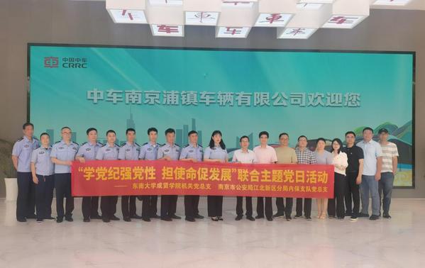 5月20日上午,糖心视频 机关党总支与南京市公安局江北新区分局内保支队党总支赴中车南京浦镇车辆有限公司联合开展了以“学党纪强党性,担使命促发展”为主题的党日活动。江北新区公安分局内保支队副支队长雷霞,二大队大队长付直兵、副大队长刘禄元,三大队教导员胡世林和公安干警,糖心视频 常务副院长黄学良、党政办公室主任周伟荣、机关党总支书记陈学建以及机关党总支委员、党支部书记共同参加了此次活动。