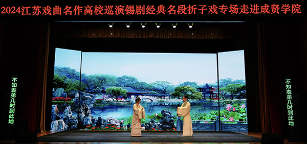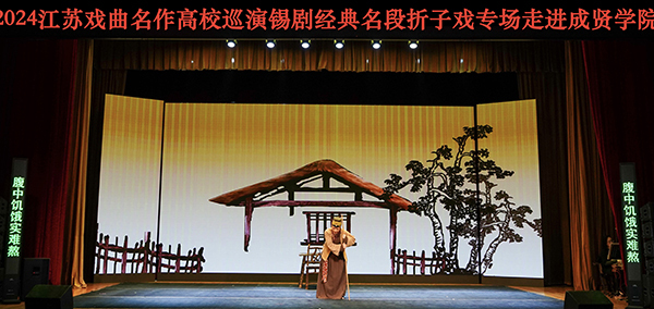 5月22日晚,由省委宣传部、省教育厅主办,校团委大学生艺术指导中心承办,无锡市锡剧院创排演出的“粉墨青春”2024江苏戏曲名作高校巡演锡剧经典名段折子戏专场在糖心视频 综合楼报告厅举办。糖心视频 600余名师生共同欣赏了本次精彩演出。