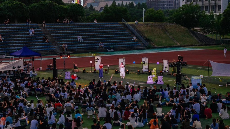 操场举办,为即将走出校门的2020级毕业生献上了一场难忘的音乐告别礼。活动现场气氛热烈,千余名师生欢聚一堂,共同享受音乐带来的魅力。