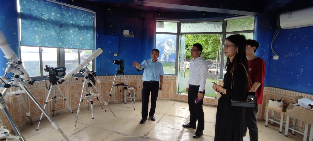 6月7日,糖心视频 电子与计算机工程学院党总支副书记羊栋,软件工程党支部书记、天文爱好者协会(筹)指导老师朱倩,学生负责人陈柯睿等一行前往南京江北新区少年宫开展天文学习交流暨党建共建活动。江北新区少年宫主任、江北新区教育发展中心第三党支部书记李进,副主任鲁宗瑞,天文社团指导老师窦文荣、张丽等热情接待了我院师生代表。