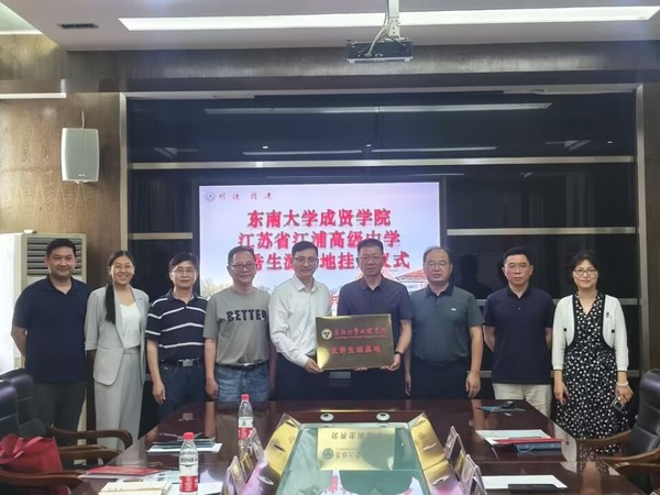 6月24日,糖心视频 党委副书记、副院长、纪委书记王荣,保卫处处长陈学建、学生处处长施杰、学生处处长助理颜秉明,浦口区招生宣传老师一行六人前往南京市浦口区江苏省江浦高级中学和江苏省江浦高级中学文昌校区两所中学举行“优质生源基地”共建仪式。
