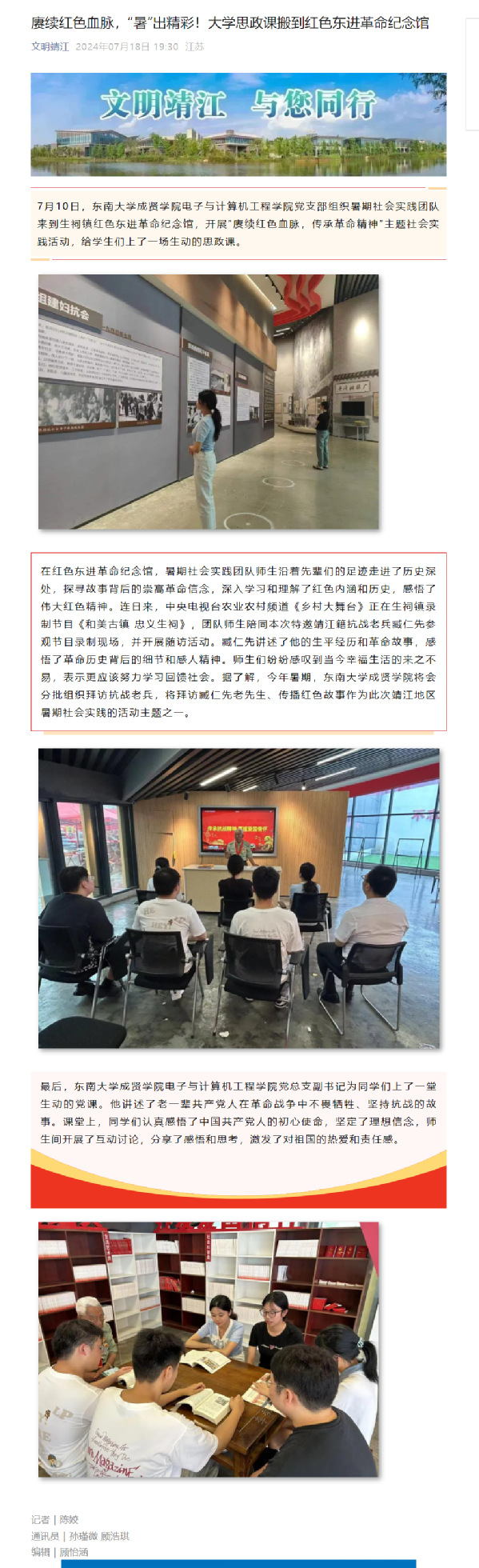 【文明靖江】赓续红色血脉,“暑”出精彩!大学思政课搬到红色东进革命纪念馆