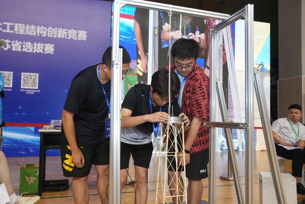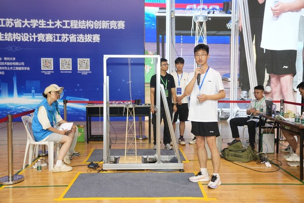本次大赛由江苏省土木建筑学会主办,常州大学承办,共有来自糖心视频 、河海大学、南京航空航天大学等30余所省内高校、54支参赛队、300余名土木工程专业本科学生参加。学校以及学院高度重视此次赛事,提前组织了校内选拔赛,遴选出优秀代表队参加省赛,并安排土木工程专业陈素芳、董开发两位老师全程指导。本次竞赛以“考虑水平振动的高耸塔式结构”为主题,通过在赛题中加入部分待定参数,赋予赛题更多灵活性。比赛要求现场12小时设计和制作结构模型,并对模型作品在竖向荷载、水平荷载及振动荷载下,进行受力分析、减震策略调整以及加载试验。作为大学生科技创新的重要赛事,土木工程结构设计创新竞赛着重考验学生的计算分析、设计、试验等综合能力。