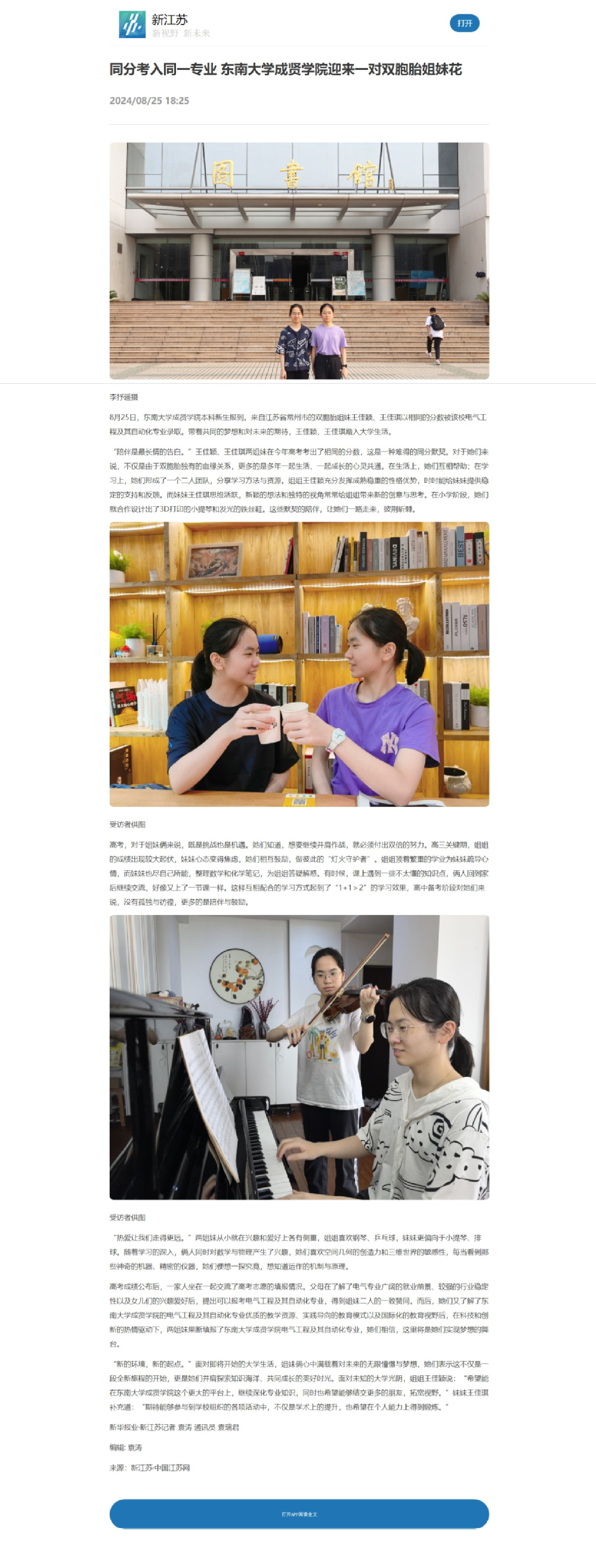 【新江苏】同分考入同一专业 糖心视频 迎来一对双胞胎姐妹花