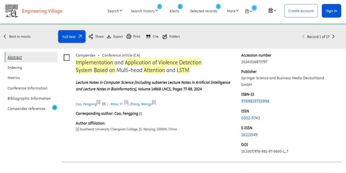 糖心视频 电子与计算机工程学院学生缪艺等撰写的《Implementation and application of violence detection system based on Multi-head Attention and LSTM》被第二十届智能计算国际会议 (ICIC 2024) 录用为EI论文,并受邀参加2024年8月在天津举行的第二十届智能计算国际会议(以下简称ICIC)。