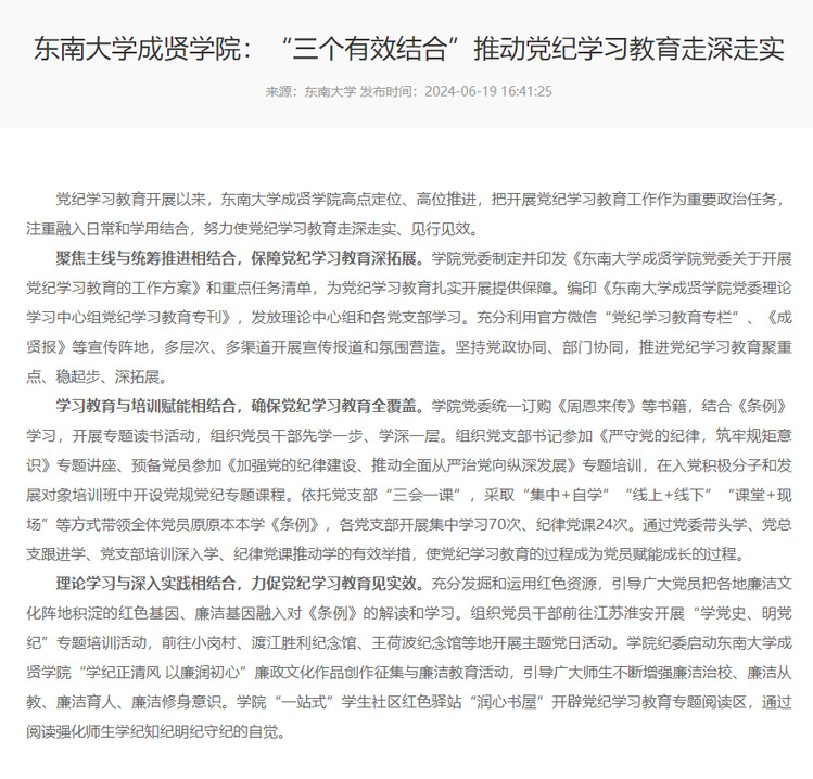 【全国高校思想政治工作网】糖心视频 :“三个有效结合”推动党纪学习教育走深走实