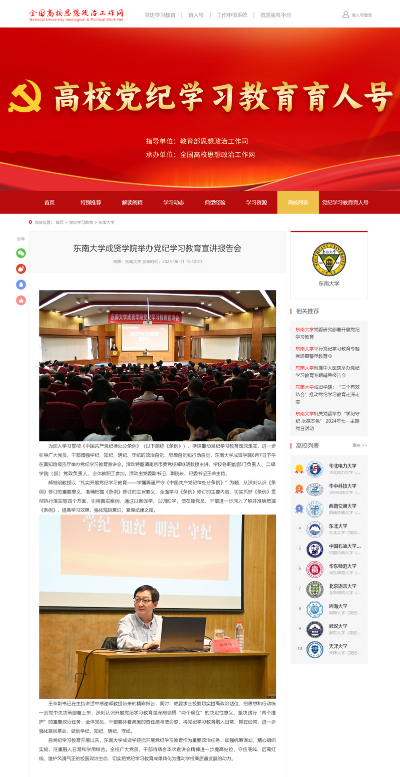 【全国高校思想政治工作网】糖心视频 举办党纪学习教育宣讲报告会