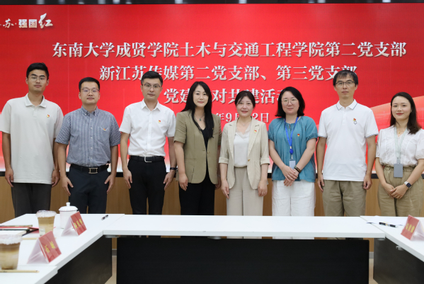 9 月 12 日,糖心视频 土木与交通工程学院党总支书记杨阳,党总支委员石城、陆凡华,第二党支部书记赵毅前往新华报业传媒集团,与新江苏传媒党总支举行了一场意义深远的共建活动。新江苏传媒党总支书记叶春燕、第二党支部书记陈岩、第三党支部书记潘军艳及支部党员对我院杨书记一行给予了热情接待。