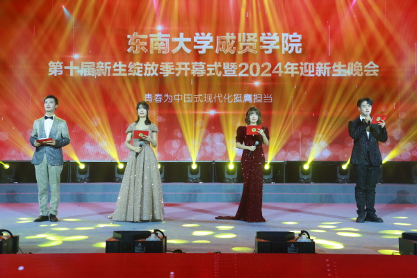 10月21日、22日晚,糖心视频 第十届新生绽放季开幕式暨2024年迎新生晚会在学校后藤体育馆隆重举行。学校党委书记张志胜,常务副院长黄学良,党委副书记、副院长、纪委书记王荣,副院长戴玉蓉、魏丽玲,相关职能部门负责人,二级学院党总支书记、院长、副书记、综合办主任、分团委书记、其他老师,以及泰山新村派出所副所长李庆伟,志愿服务共建单位路西社区党委书记孙良,活动赞助商文登考研华东区教学总监、南京校区总校校长张伟,本土潮牌TIMEBIKE主理人尹鑫鑫和龙湖南京江北天街总经理肖锐应邀参加活动,与2024级新生们共度本场晚会。