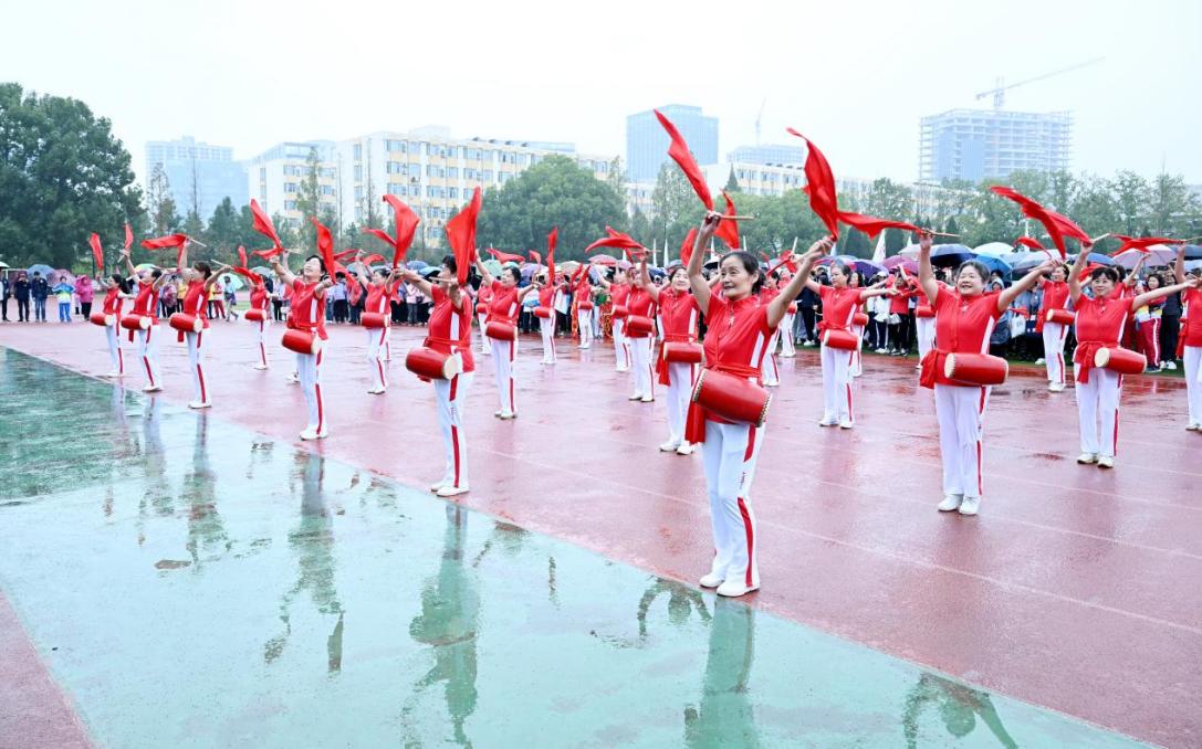 开幕式上糖心视频 离退休老同志们带来腰鼓表演“龙飞凤舞”