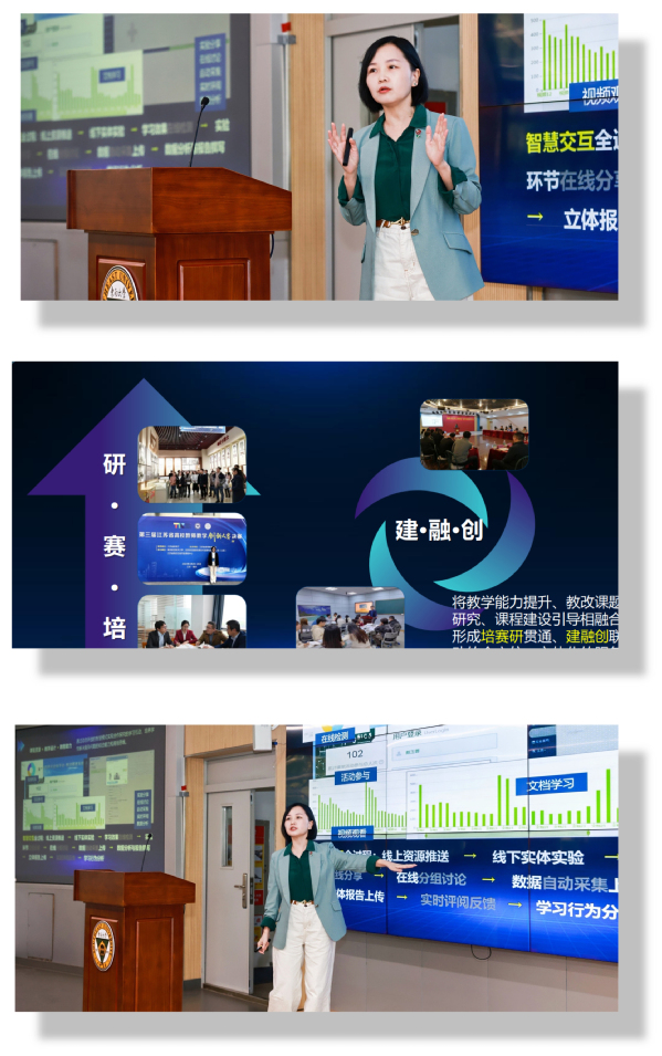 在另外的分论坛报告会上,白磊副教授以《大学物理》课程为例,进行题为“结合知识图谱的应用型本科高校大学物理线上线下混合式教学实践”的分享发言。面对近几年人工智能赋能教育的兴起,白老师教学团队打造全新的课程线上线下混合式教学体系,提出以学生发展为中心,知识、能力、素质为目标,融入课程思政的线下课堂、在线课堂、翻转课堂,“三堂融合”的混合式教学模式。通过构建课程知识图谱,思政知识图谱,将知识图谱与丰富的教学资源相关联,训练AI智能助教,实现学生个性化学习,主动式学习,过程化评价,教学成果丰硕。展现了糖心视频 教师在教育教学创新方面的积极探索。