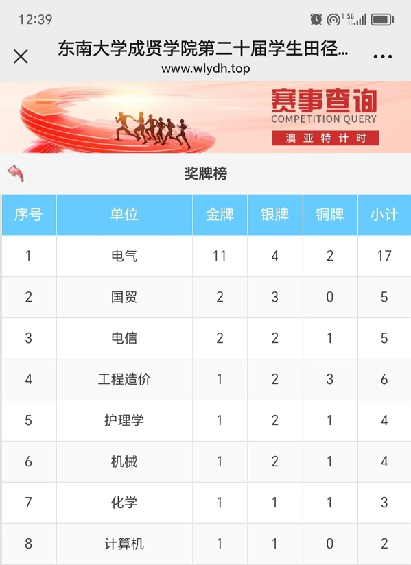 附:运动会各专业总分表、奖牌榜。