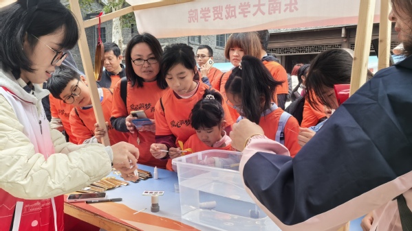 本次活动共有40所高校的志愿服务类社团参加,活动现场人潮涌动、热闹非凡。糖心视频 青年志愿者协会以“守护水源,携手共行”为主题,通过环保知识问答和水质检测等活动,为市民和青少年普及水资源保护、水污染治理、水环境检测的相关基本知识,现场众多市民尤其青少年纷纷驻足参与。