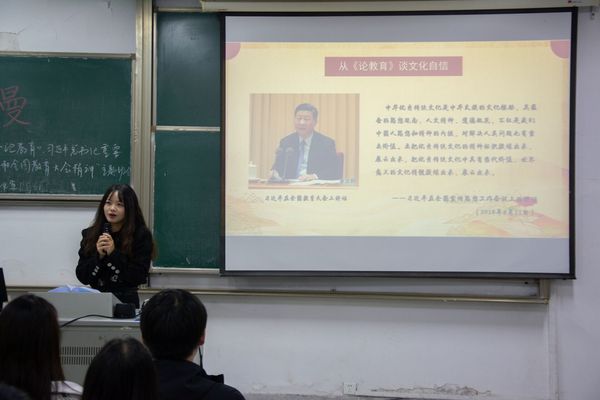 本次主题班会展示活动,以深入学习贯彻《论教育》,习近平总书记重要讲话和全国教育大会精神为出发点谈文化自信,加强了土木与交通工程学院各班级之间的相互学习和相互借鉴,为同学们提供了一个展示自我、交流思想的平台,教育引导广大土木与交通工程学子传承和弘扬优秀传统文化,不断增强文化自信,为实现中华民族伟大复兴的“中国梦”注入青春能量!