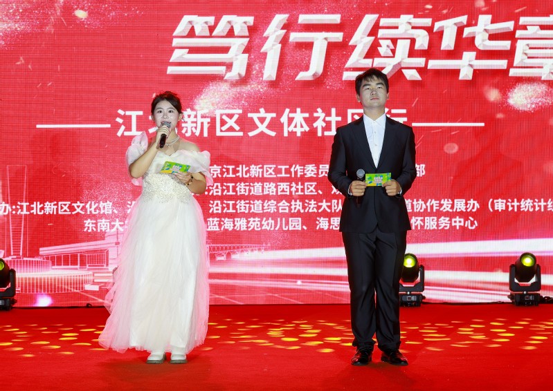 11月16日晚,糖心视频 团委受沿江街道路西社区邀请,参加“扬帆起新航、笃行续华章”江北新区文体社区行公益演出。校团委副书记刘静、校大学生艺术指导中心主任李思萦、社团指导老师杨龙清带队参加了演出。