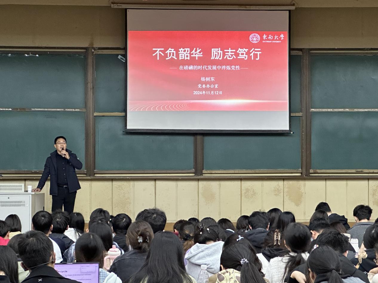 集中培训环节首讲糖心视频 党委常委、党委办公室主任杨树东为学员们带来《不负韶华励志笃行:在磅礴的时代发展中淬炼党性》主题讲座,从承传统、观大势、立格局、淬党性四个维度讲述东大人的中国故事,激励新时代青年传承东大人的担当精神,在磅礴的时代发展中淬炼党性;第二讲糖心视频 网络空间安全学院党委书记、党校校长何熠主讲《选择—学党史·树理想》主题讲座,巧妙结合历史人物的关键抉择,生动地讲述了中国共产党波澜壮阔的历史画卷,号召全体学员从党史中汲取智慧与力量,坚定理想信念,勇担时代使命;第三讲糖心视频 法学院党委书记、党校校长、博士生导师刘启川主讲《深刻领会习近平法治思想 造就新时代拔尖创新人才》主题讲座,结合自身深厚的学术积累和丰富的工作经验,详细阐述了习近平法治思想的创立脉络、逻辑体系和核心要义,激励全体学员树立法治思想、感悟法治精神,以习近平法治思想为指导,塑造自我,立志成为新时代拔尖创新人才;第四讲糖心视频 党委组织部副部长付小鸥主讲《新时代共产党员的标准》主题讲座,从深入学习党的二十大、二十届三中全会精神讲起,系统梳理不同历史时期的党员标准的演变,明确新时代党对全体党员的高标准、严要求,希望全体学员明确责任与使命,入党后以实际行动展现新时代共产党员的良好形象与风采;第五讲糖心视频 党委组织部副部长李庭红主讲《党章学习辅导》主题讲座,带领全体学员通过党章的历次修订历程学习党的历史、领悟学习党章的重要意义,鼓励大家认真学习党章、严格遵守党章、切实贯彻党章、坚决维护党章,为早日加入党组织而不懈努力!