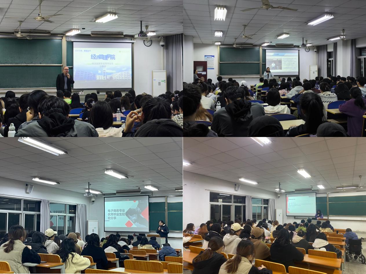 11月14日—20日,经济管理学院成功举办优秀校友经验交流分享会暨“学长学姐有话说”专题活动,该活动由各专业教研室主任和辅导员共同组织,学院2022级全体学生,2023级、2024级学生代表参加。该活动邀请了来自企事业单位具有丰富实践经验的校友和在读研究生优秀校友代表,旨在通过校友的职场经历、行业洞察和备考经验,帮助在校生拓宽视野,激发学习动力,明确职业方向,深化对专业发展前景的认识,同时促进学院与校友间在专业建设及职业发展等方面的交流与合作。