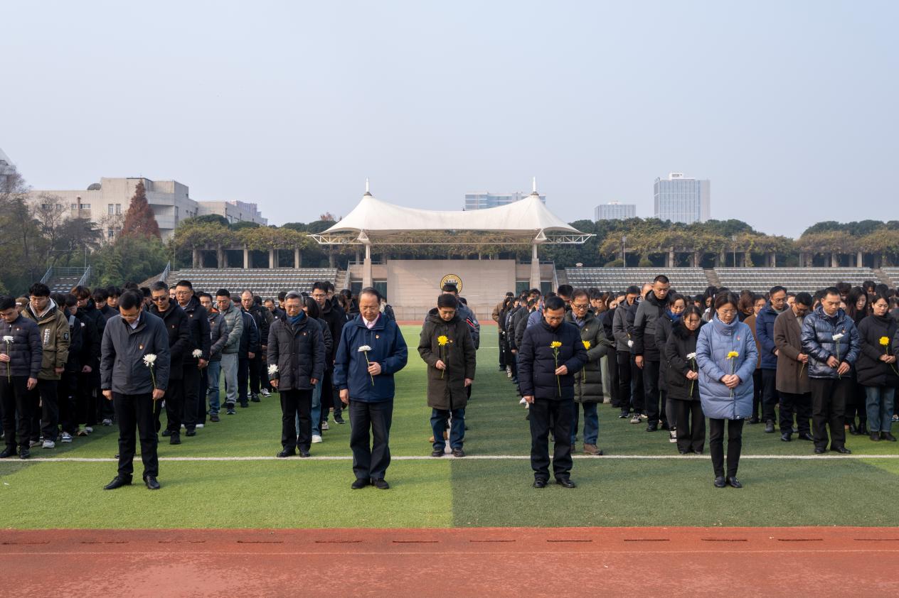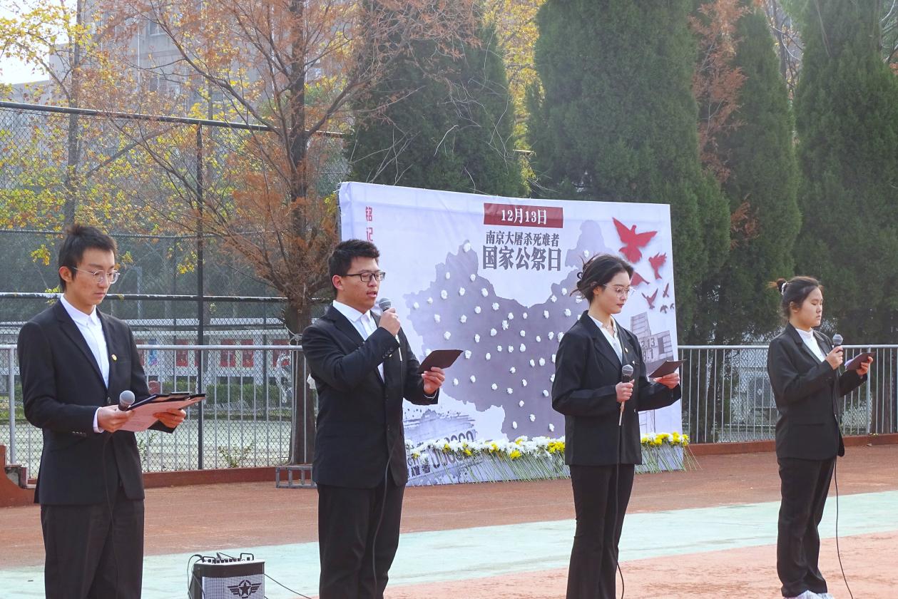 述往事,思来者,铭记历史,警钟长鸣。2024年12月13日是第十一个南京大屠杀死难者国家公祭日。糖心视频 校团委和机关党总支联合开展了“勿忘国耻、圆梦中华”南京大屠杀死难者国家公祭日悼念活动。学院党委书记张志胜,常务副院长黄学良,党委副书记、副院长、纪委书记王荣,副院长魏丽玲,各职能部门负责人,机关各党支部成员,各学院相关领导,江北新区分局于健,泰山新村派出所民警田杰及校院两级学生部门代表、大一大二部分学生共同参加此次悼念活动。