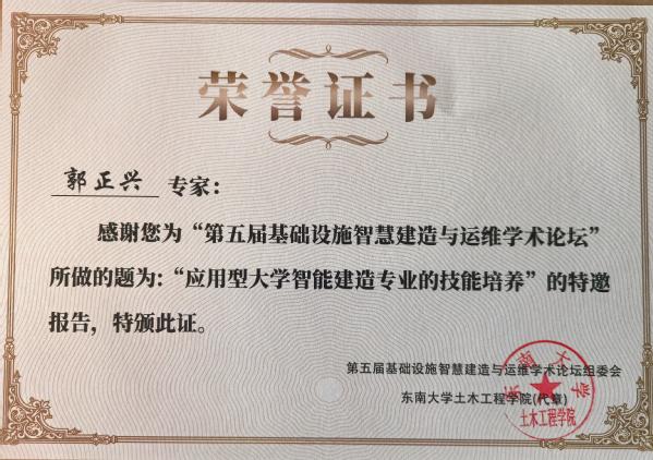 本次论坛依托大数据、云计算、区块链和人工智能等新兴技术的使用和发展,聚焦加快5G网络、人工智能、大数据中心等新型基础设施建设进度,围绕进一步统筹好新型和传统基础设施的协同融合发展,构建现代化基础设施体系,重大基础设施智慧建造与运维最新研究进展等议题展开交流研论,共同探讨我国在相关领域的卡脖子问题及其解决思路。论坛上,郭正兴院长结合“智能建造本—研—职多层次融合人才培养”议题,作了题为《应用型大学智能建造专业的技能培养》专题报告。郭院长围绕建筑工业化、数字化、绿色化融合发展,应用型大学智能建造专业的知识结构和技能结构分析,糖心视频 智能建造专业模块化实操技能构建与实施,智能建造综合实训课程体系建设等内容,详细报告了糖心视频 智能建造专业在专业、课程建设方面所做的尝试与探索,为国内同类高校构建创新人才培养模式,培养具有实操技能的高水平应用型本科人才提供实践经验。