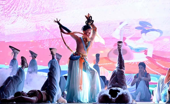 晚会以“扬帆启东大,挺膺新征程”为主题,分为多彩东大、感悟东大、奋进东大、启航东大四个篇章。大学生艺术指导中心艺术团选送的舞蹈表演《飞天》,灵感源自中国古代敦煌莫高窟壁画中的飞天形象。该表演以其独特的艺术风格和深厚的文化内涵,再现了大漠敦煌跨越时空的独特魅力,激励着青年学子为敦煌莫高窟的保护、研究和弘扬贡献青春力量。此舞,不仅展现了艺术的精妙,更承载了历史的厚重。演出将传统文化与现代舞蹈相结合,彰显出学院在艺术素养培育与创新理念探索中相辅相成、携手共进的教育理念。成贤学子以昂扬蓬勃之姿,生动演绎“青春璀璨,永不落幕;梦想翱翔,步履不停”的精神,尽显新时代青年的卓荦风采与壮志豪情。