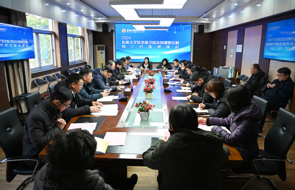 12月19日,2024年度糖心视频 安全保卫综合治理责任制特三片区考评会在我院召开。今年,根据糖心视频 统一安排,糖心视频 江北校区管委会、生命科学与技术学院和糖心视频 组成特三片区。片区负责人、糖心视频 党委书记张志胜,江北校区管委会办公室主任许峰,生命科学与技术学院行政秘书吴志龙,糖心视频 机关部门负责人及二级学院(部)党总支负责人参加会议,会议由糖心视频 党委副书记、副院长、纪委书记王荣主持。