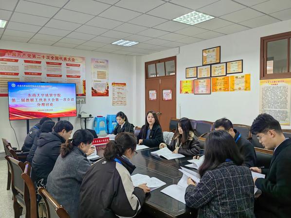在分组讨论环节,全体参会代表分为八个代表团,分别对学校工作报告、财务工作报告、工会工作报告以及相关决议草案进行了认真讨论和审议,并本着对学校事业发展高度负责的态度,提出了一批建设性意见和建议。主席团全体成员听取了各代表团分组讨论情况。