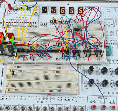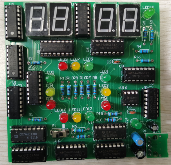 简易交通信号灯的设计与实现,首先需要同学们设计方案,针对设计的方案进行仿真分析,在仿真结果正确的情况下进行硬件实物的购买和焊接。学生们实现的方案多种多样,包含使用实验箱搭接完、数电实验板搭接,以及制作PCB板焊接完成的(如下图)。针对学生完成情况,以及现场完成情况,老师的评分考核也是过程化,实现更准确地体现学生的真实学习情况。