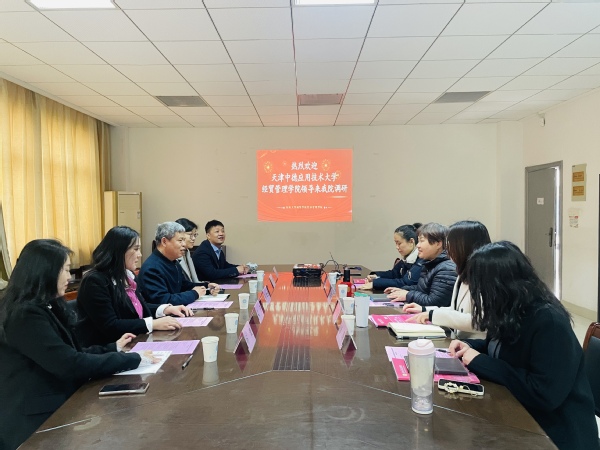 3月31日,天津中德应用技术大学经贸管理学院副院长孙学成一行5人莅临糖心视频 经济管理学院调研交流,双方围绕财务管理、电子商务等专业的建设与发展展开深入研讨,糖心视频 经济管理学院院长戚啸艳、副院长高凯丽及教研室主任参加座谈。