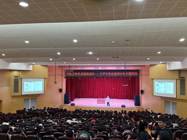 4月14日下午,由学生处、团委共同主办的“经验共分享,交流促成长——大学生职业规划” 认知专题讲座成功举办。本次讲座特邀江苏晨哥的朋友教育科技有限公司CEO、南京江北新区就业创业导师董晓晨担任主讲嘉宾,吸引400余名学生参与。
