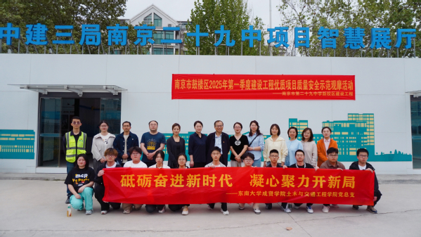 为深入学习贯彻党的二十大精神,落实新时代党建引领创新发展的要求,4月11日下午,土木与交通工程学院教工党支部联合中建三局组织了一场主题鲜明、富有深度的智能建造技术研学活动。此次主题党日活动以“党建引领筑根基,校企共建促‘砼’行”为主题,由院长郭正兴、党总支书记杨阳、副院长温旭丽带队,学院教师党员及部分学生党员共同走进了南京市第二十九中学新校区建设工程项目现场,近距离感受装配式建筑和绿色建造的先进技术与创新成果。