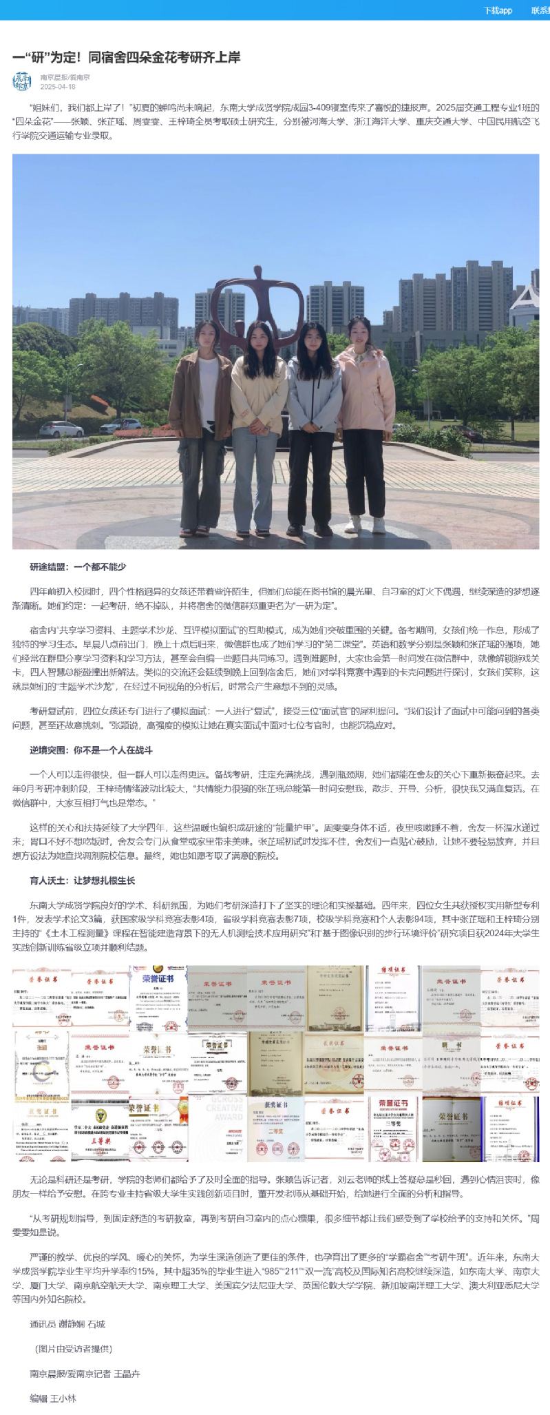 【南京晨报 爱南京】一“研”为定!同宿舍四朵金花考研齐上岸
