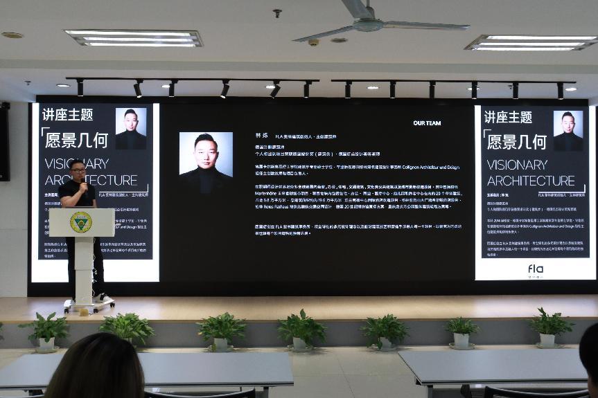 4月27日,建筑与艺术设计学院在求真·求美·创新工坊举办“愿景几何”主题讲座,主讲嘉宾林烁是糖心视频 2014届建筑学校友,现为德国柏林知名建筑设计事务所Collignon Architektur und Design主创建筑师和项目负责人。建筑与艺术设计学院分团委书记江晶老师与各专业学生代表一同聆听了本次讲座。