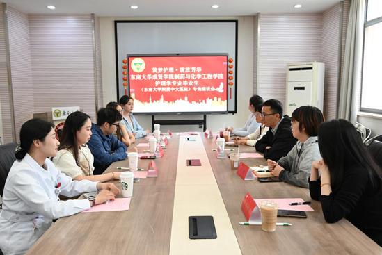 在第114个国际护士节即将来临之际,为进一步加强校友与母校之间的联系,5月6日,制药与化学工程学院党总支书记周继荣带队赴糖心视频 附属中大医院看望护理学专业毕业生并召开座谈会。会议由制药与化学工程学院综合办主任刘庆主持,护理学专业辅导员韩述娟、张怀婷、葛婷和现在糖心视频 附属中大医院工作的部分校友参加了活动。